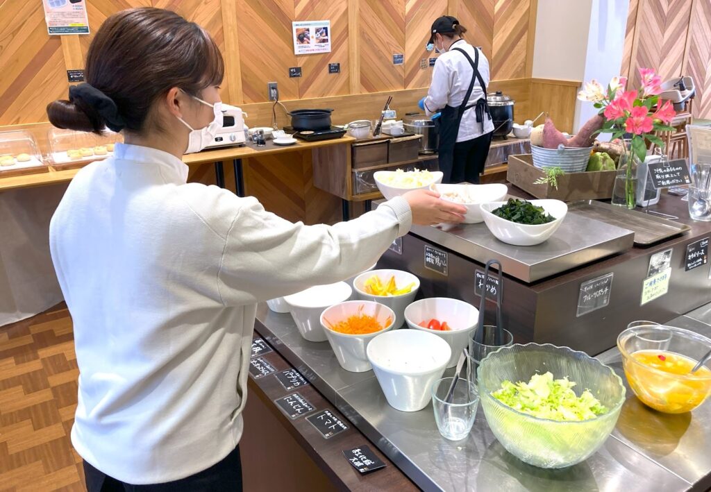 長谷川さん「あくまで、主役は野菜などの農産物であり、農家さんだと。矢野さんは、その思いを見事に汲んでくれています。ビュッフェの一番人気は、焼いただけ、蒸しただけのシンプルな野菜料理や、生野菜のサラダなんです。デリもありますが、基本的には薄味で、野菜の味そのものがわかる味付けを意識しています」