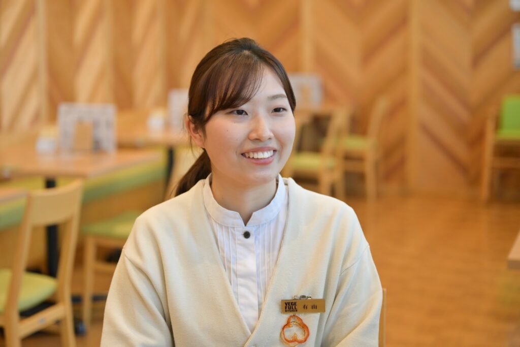 レストランの成り立ちや仕組みがわかったところで、現場で働く人の声も聞いていきます。2024年から、豊丘村の地域おこし協力隊として着任し、VEGE-FULL KITCHENで働く有山ひかる(ありやま・ひかる)さんです。