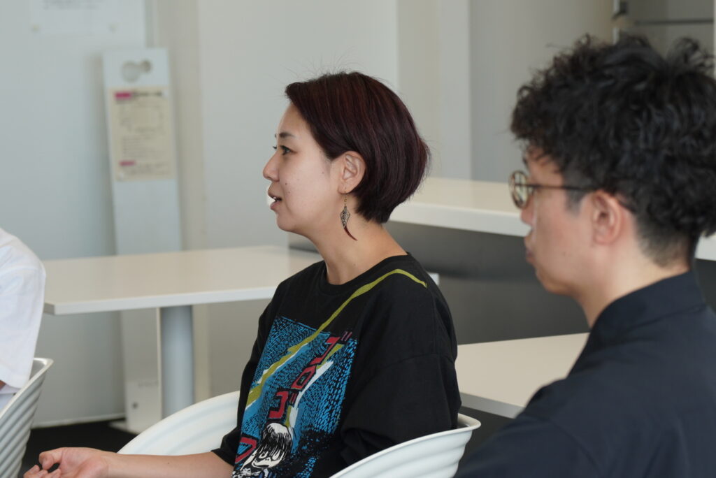 ながの人事室では報告会前に各テーマオーナーに集まってもらい、対談形式でこの2ヶ月間のお話を伺いました。まず感想を話してくれたのは、「Why Shiojiri !? 〜移住ジャーニーの可視化と提案〜」をテーマに掲げる折井さんです。