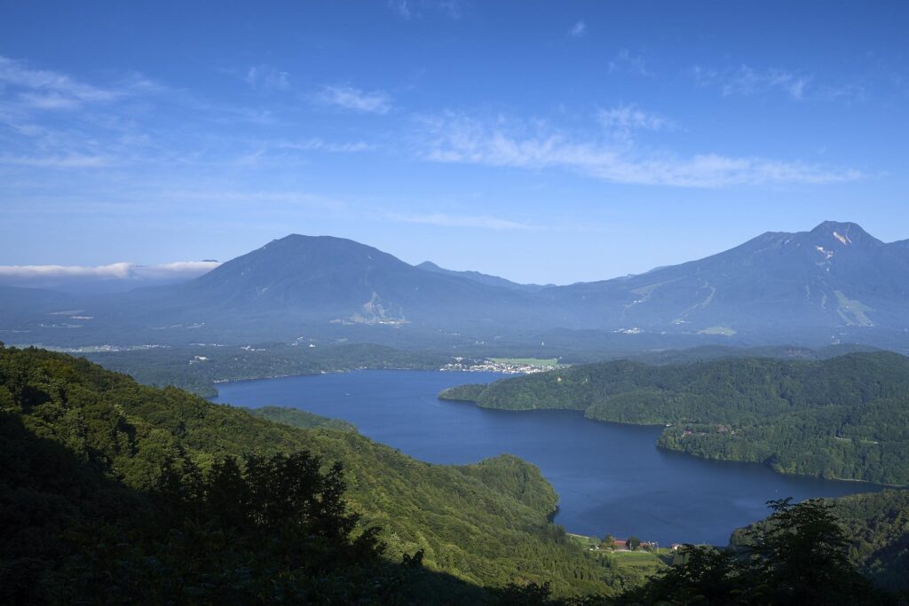 妙高山、黒姫山、飯綱山、戸隠山、斑尾山で形成された北信五岳に囲まれた高原盆地帯にある信濃町。日本の三大外国人保養地と言われ、避暑地としても人気が高い(写真提供:癒しの森係)